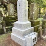 ●老朽化が進んだお墓の建て替え工事。愛媛県産大島石の上品で高級感あるお墓。北栄町の寺院様墓地にて