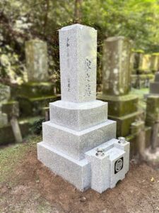 ブロックの囲いを取り外して、平らにならして工事完了です。囲いの周辺にあった小石などもきれいに取り除いて、周りのお墓にお参りされる方に今後も気持ちよくお参りいただけるように仕上げました。別の場所にあったご親戚様のお墓も解体工事をお任せいただき、「きれいに仕上がってよかった」と安心していただけました。このたびは、弊社にお墓の解体工事をご相談いただきましてありがとうございました。
